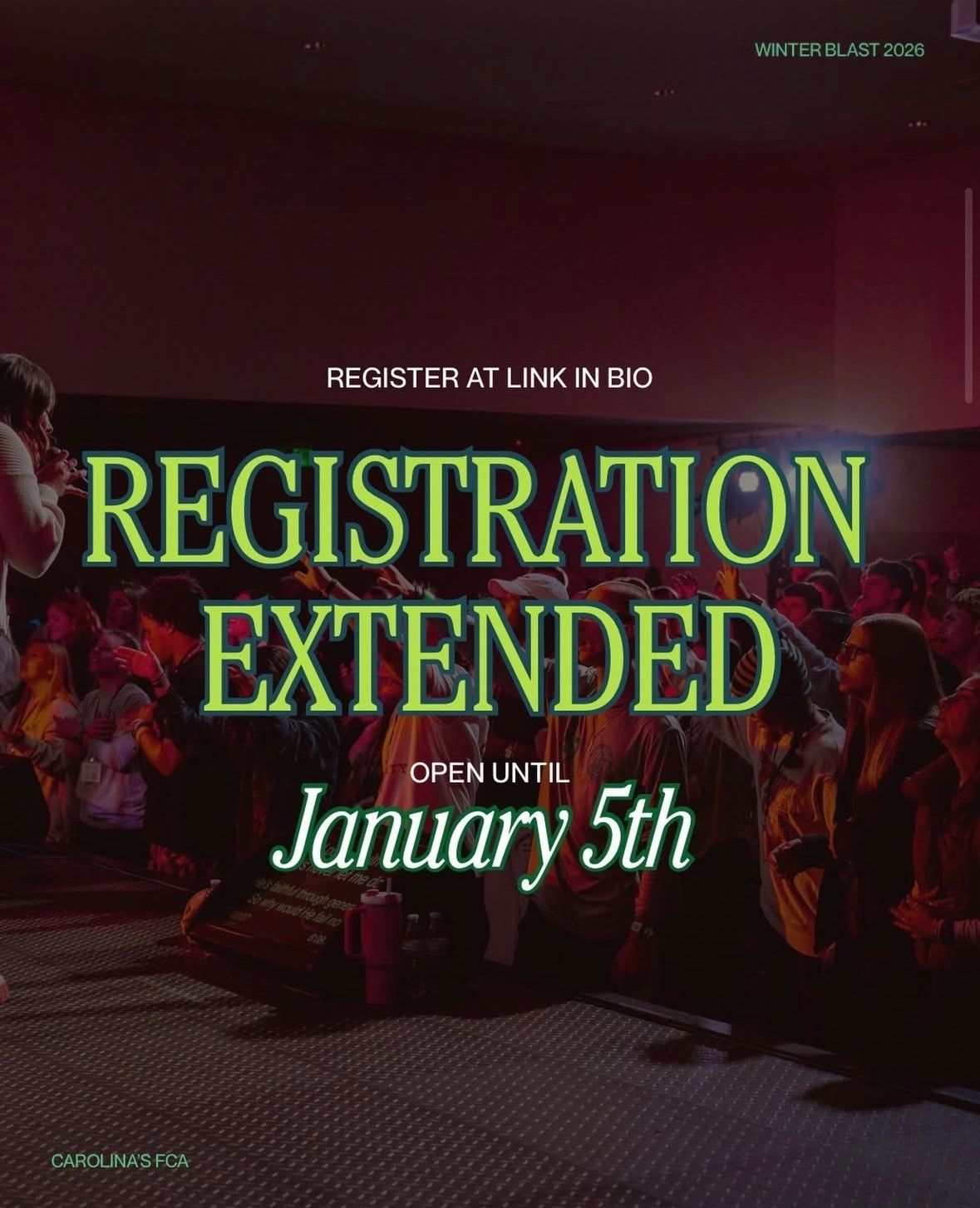 Winter Blast is an opportunity for collegiate athletes from all around the Carolinas Region and beyond to come together for Fellowship, Competition, Fun Challenges, Breakout Sessions and Biblical Teaching & Worship.